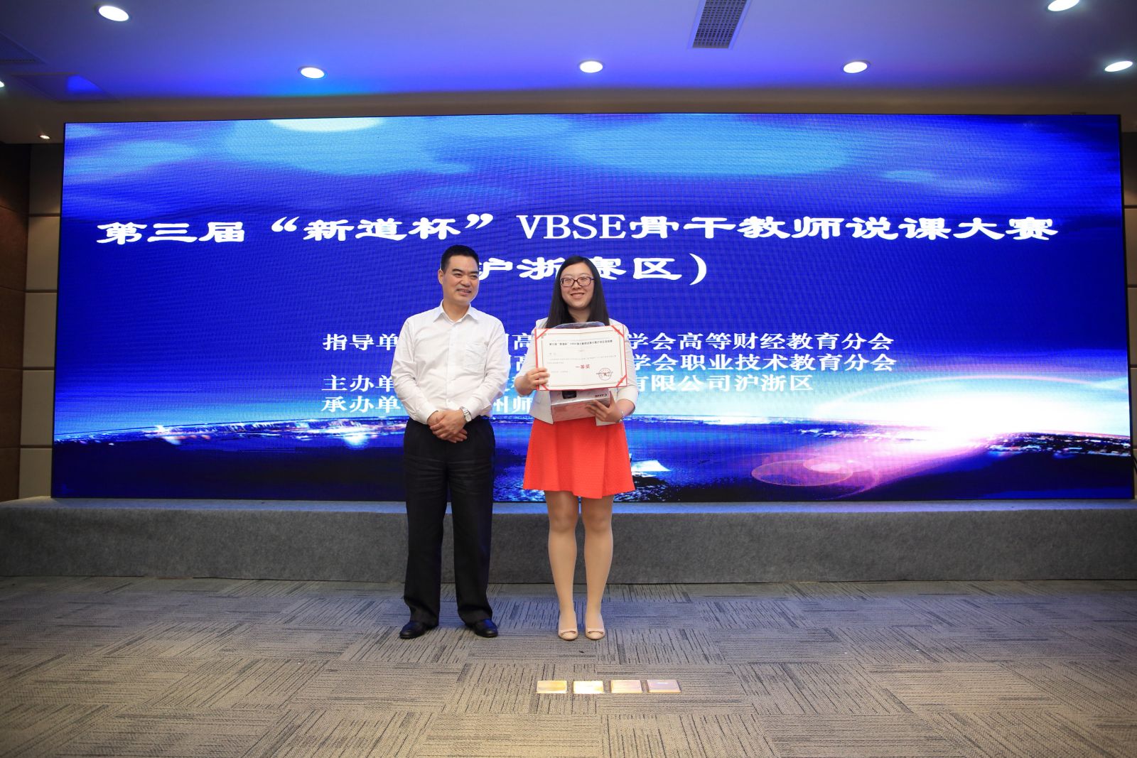 議同期舉辦了第三屆“新道杯”VBSE骨干教師說課大賽滬浙區(qū)選拔賽。來自滬浙區(qū)八所院校的參賽嘉賓分別講解了新道VBSE(虛擬商業(yè)社會環(huán)境)的課程設(shè)計(jì)、教學(xué)實(shí)施及教學(xué)成果總結(jié),比賽現(xiàn)場氛圍十分激烈。