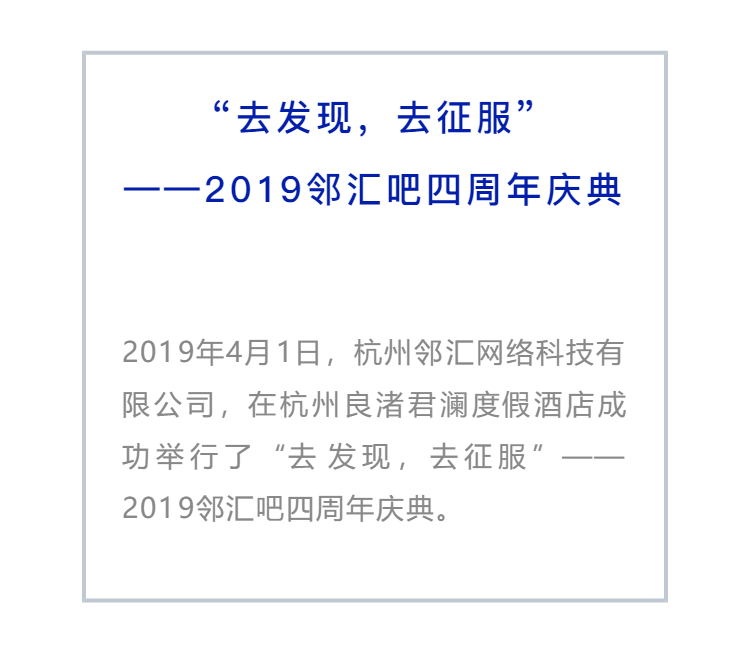 “去發(fā)現(xiàn),去征服”——2019鄰匯吧四周年慶典-會議會展活動策劃案例-杭州伍方會議服務(wù)有限公司