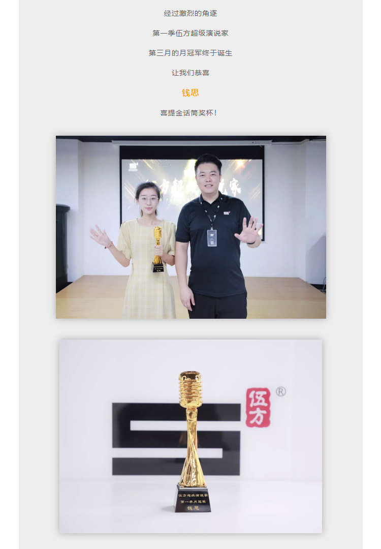 伍方資訊丨“伍方超級演說家”第一季第三月月冠軍誕生!