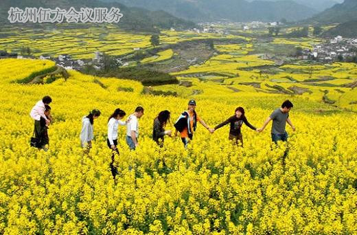 摘要:清明假期,“中國最美的鄉(xiāng)村”江西婺源10萬畝油菜花次第開放,大批游客聞香而動,讓本來寧靜的山村熱鬧起來。杭州伍方會議服務(wù)也因為承接的一場會議親身前往江西婺源,有幸觀看了如此勝景。