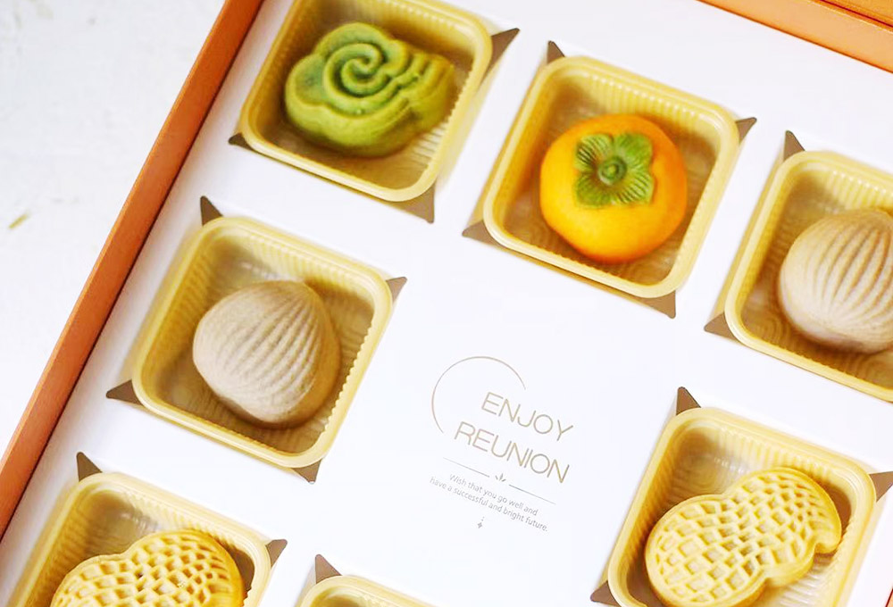 2個(gè)月餅:奶黃流心月餅 桃山皮櫻花月餅